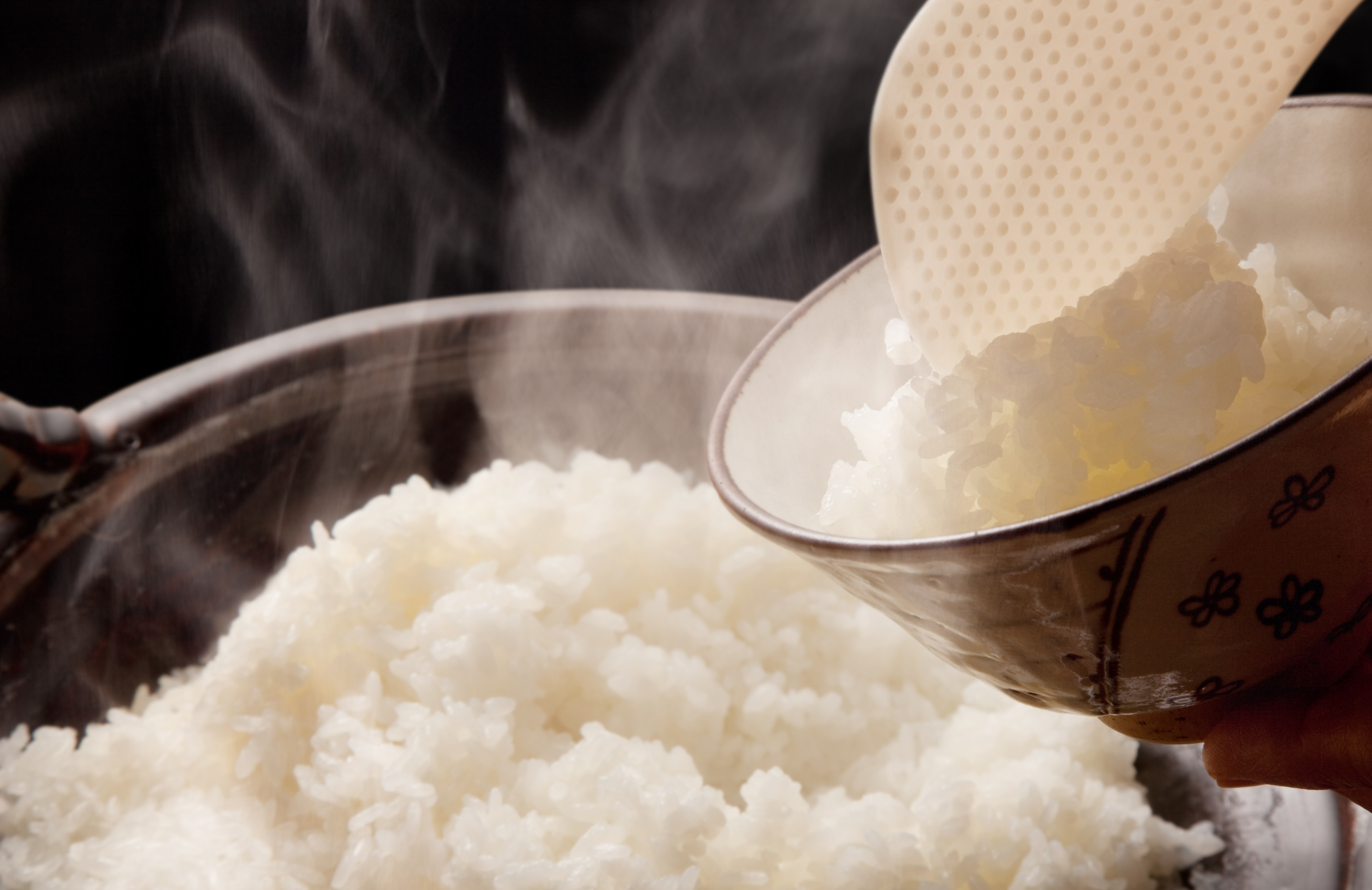 最初は、釜全体を徐々に加熱し、米に十分な水分を吸収させてから、強火で一気に沸騰させる。