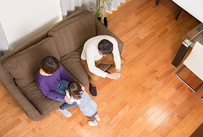 おだやかにお部屋全体を暖める床暖房は 家族みんなに理想的な暖かさ。